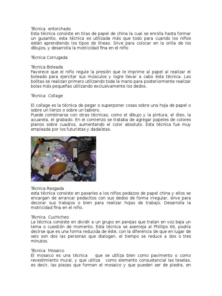 Luego la educadora le entrega la lmina de una jirafa para que la rellenen con papel picado. Conocer los ejercicios que en ella se desarrollan, permite … La técnica consiste en hacer una composición, rasgar las tiras de papel, periódico o revista, luego enrollarlas y colocarlas en varias partes de la composición, está técnica va acompañada con témpera, creyones de cera y marcadores finos. 1 educadora de prvulos 2 asistentes de prvulos 1 alumna en prctica. La educadora felicita a materiales: